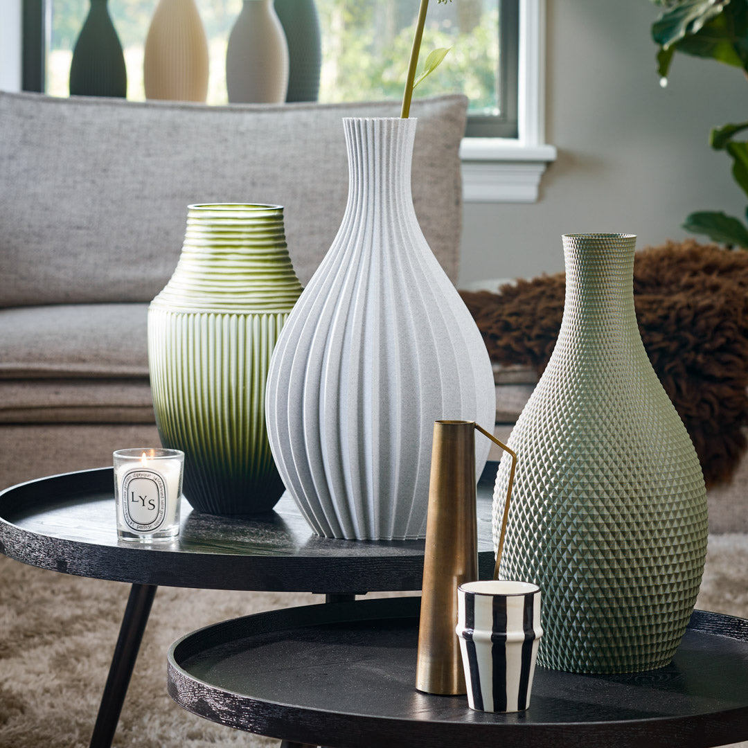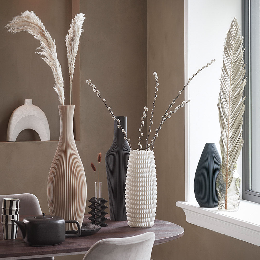 Meet my 3D printed table vases, crafted layer by layer in the Netherlands from recycled plastic packaging waste. Sustainable design that gives waste a beautiful second life.