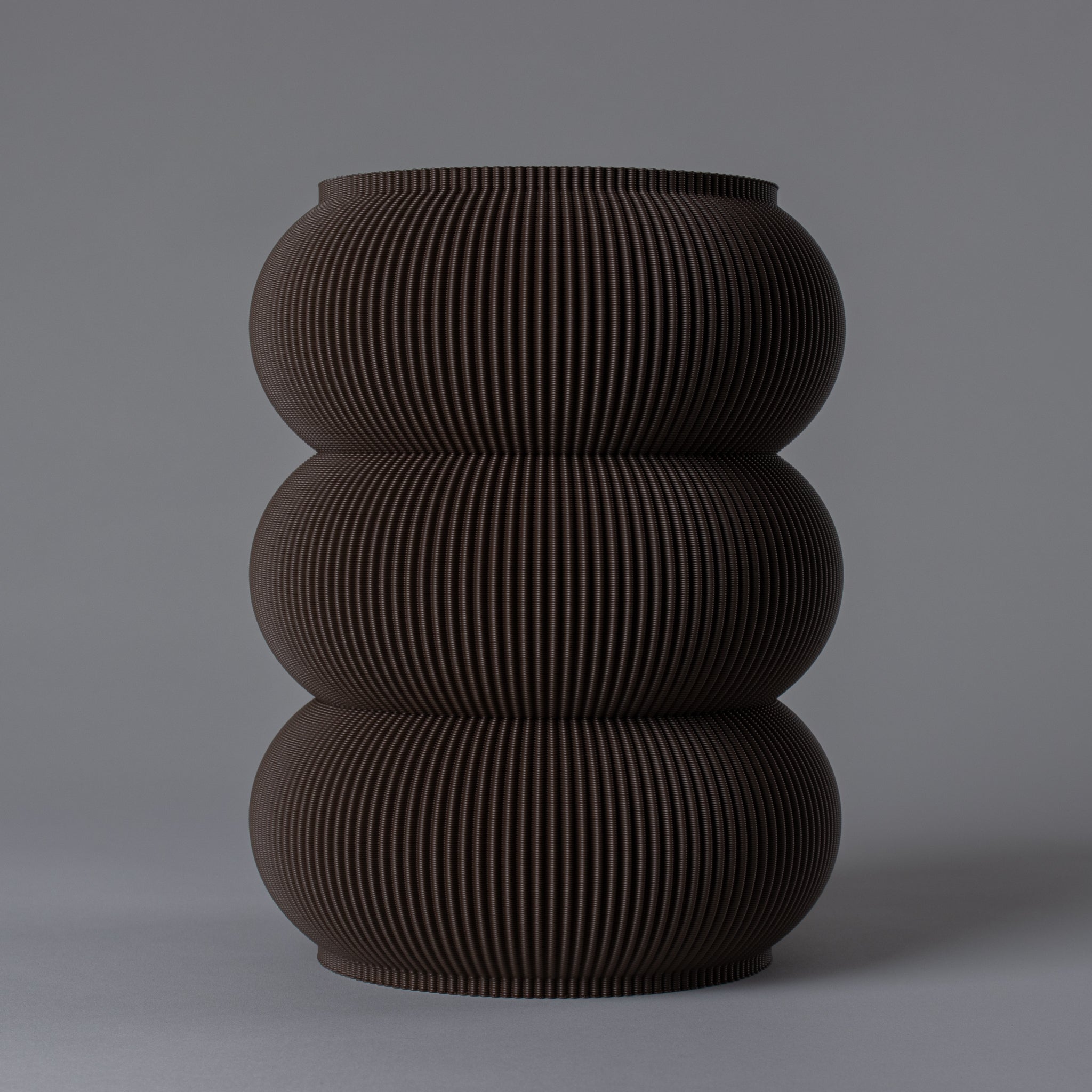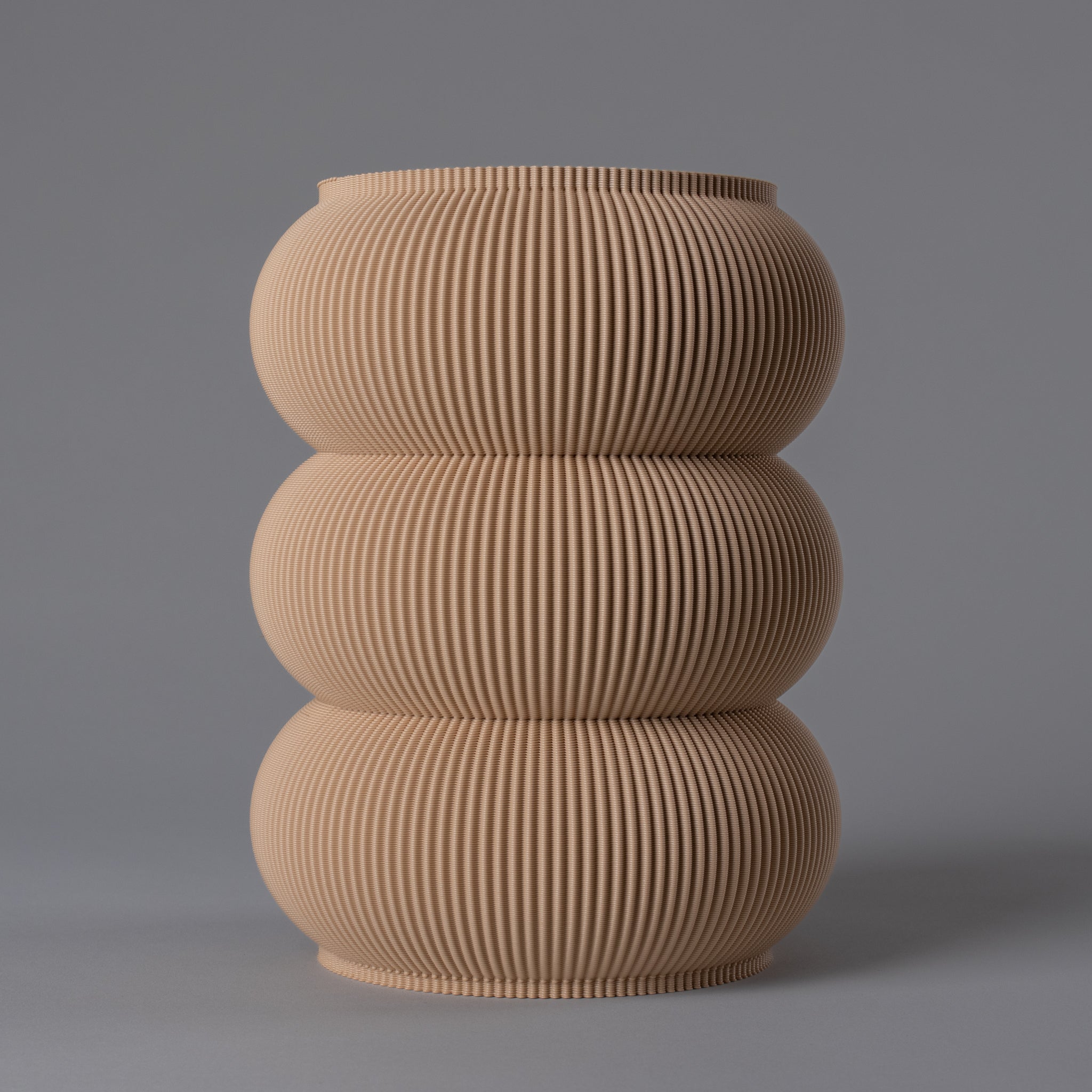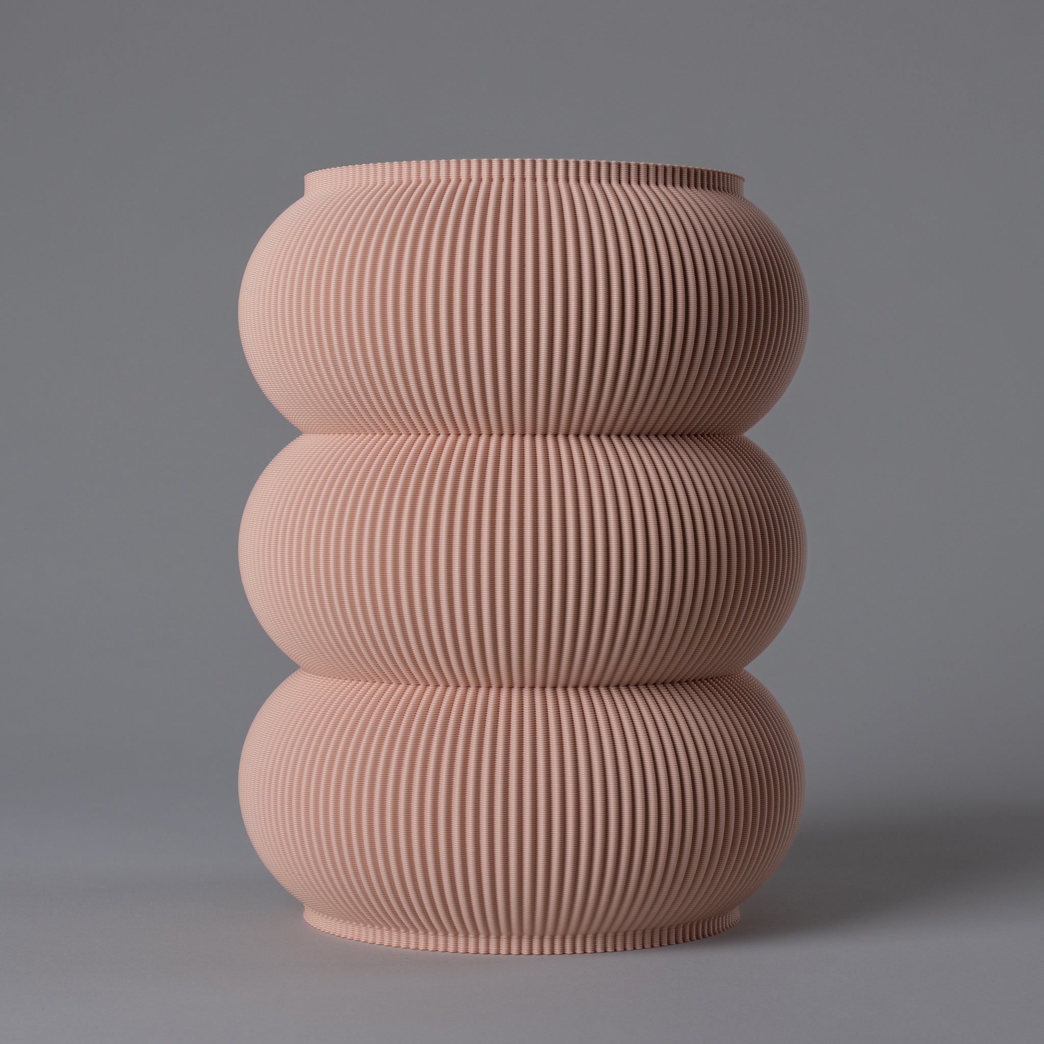 EMMA wordt speciaal voor jou op bestelling gemaakt in onze studio in Zeewolde. Elke vaas wordt laag voor laag 3D geprint van gerecycled biokunststof van voedselverpakkingen. Tijdens een zorgvuldig proces van circa 12 uur ontstaat een kenmerkende gelaagde textuur die elk exemplaar uniek maakt. Hierdoor haal je niet alleen een tijdloos designobject in huis, maar ook een duurzaam en lokaal gemaakt product.