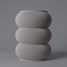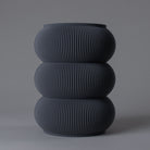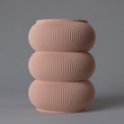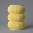 Kenmerken: speels design, zachte rondingen, fijne ribbeltextuur, matte afwerking, brede basis, geschikt voor water, dunwandig maar robuust, brede halsopening, geschikt voor bloemen van 30 tot 40 cm hoog.