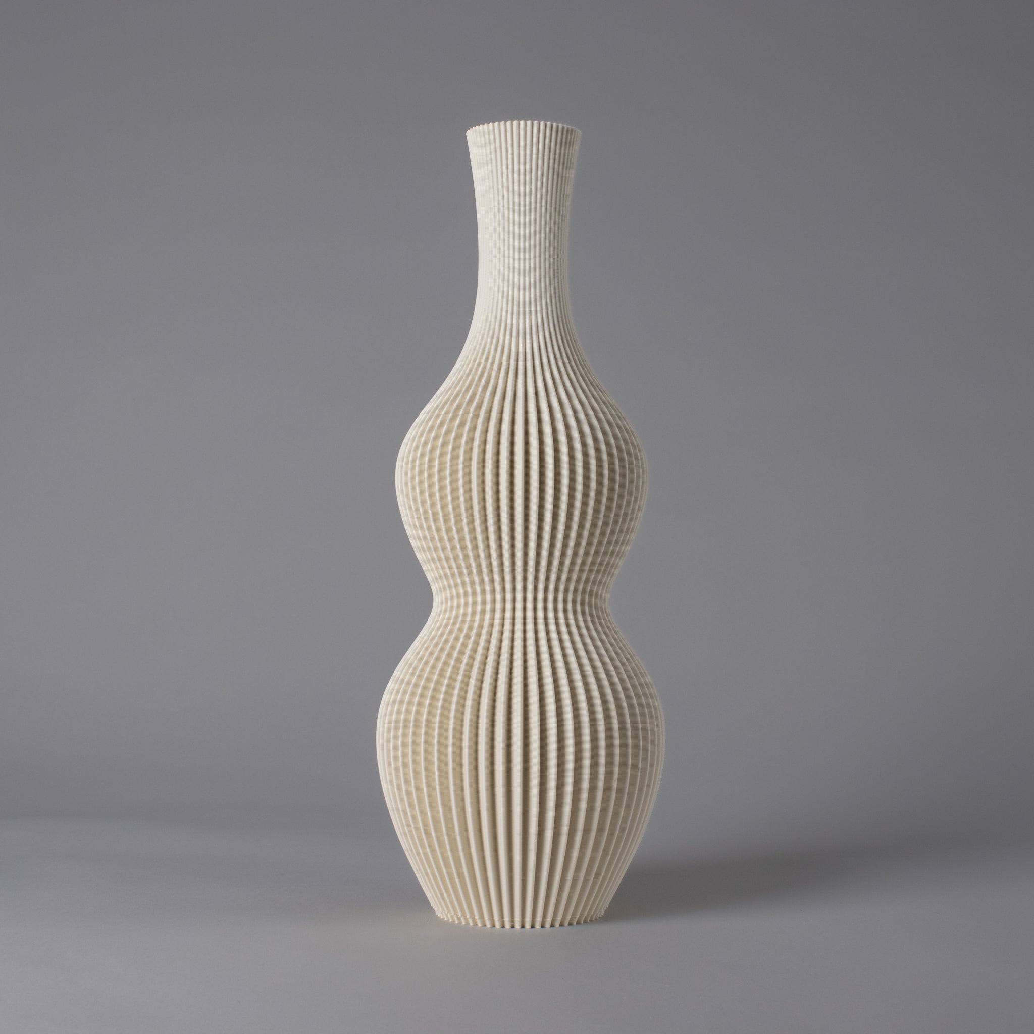 Op bestelling gemaakt in Zeewolde: Elke vaas wordt laag voor laag opgebouwd met een 3D printer, met subtiele details die jouw exemplaar uniek maken.
