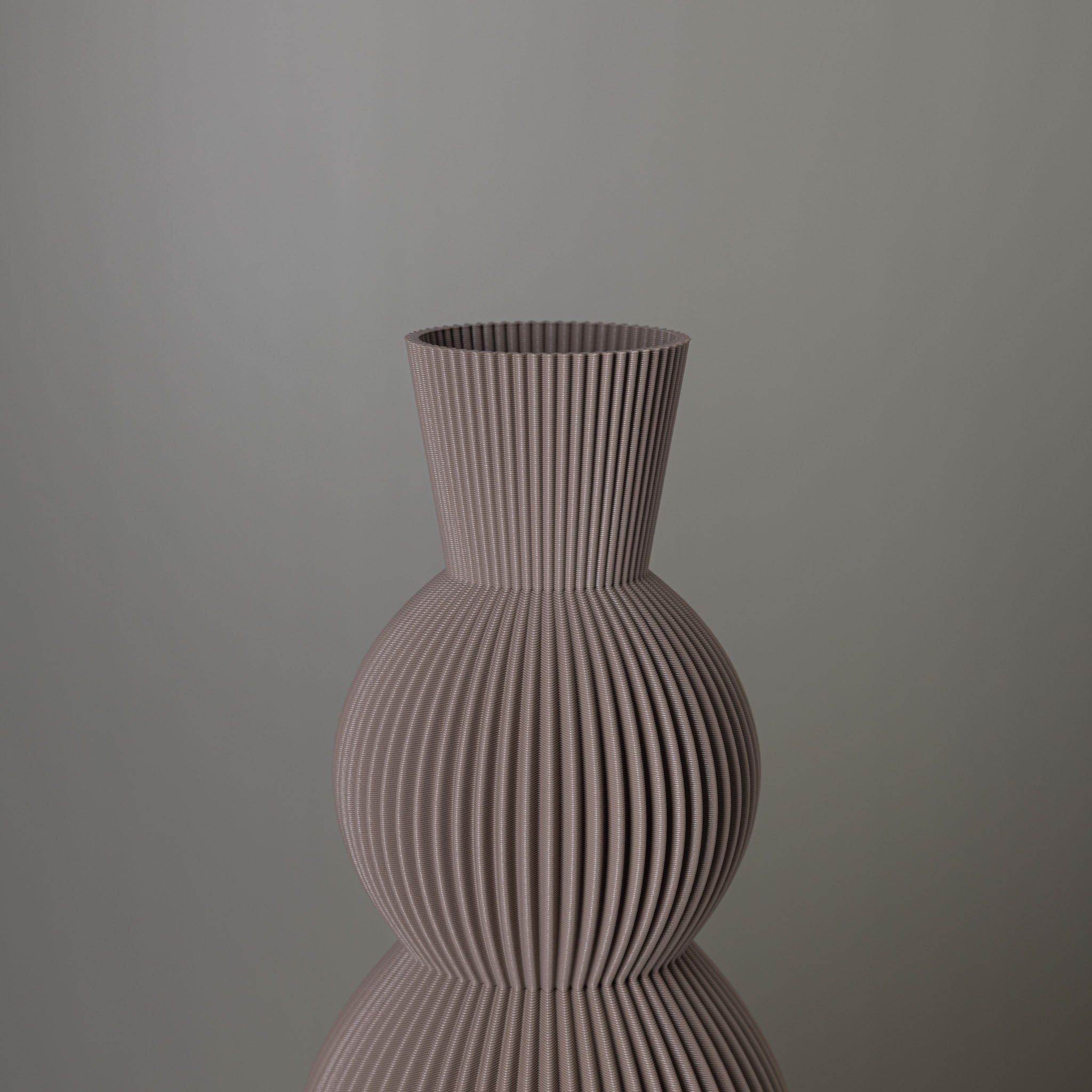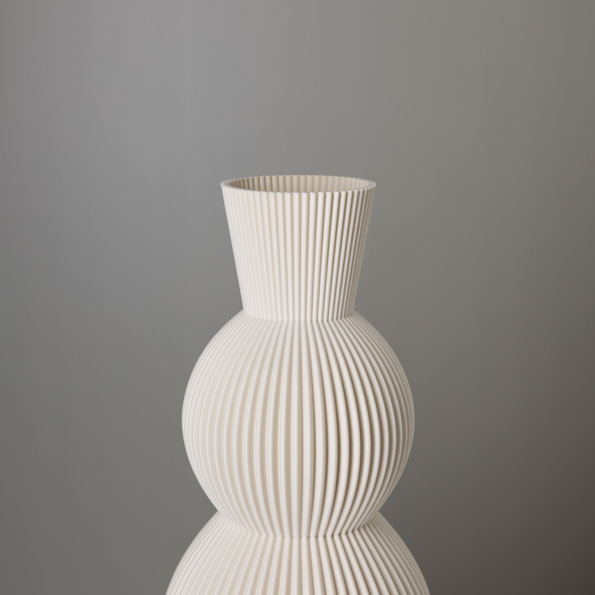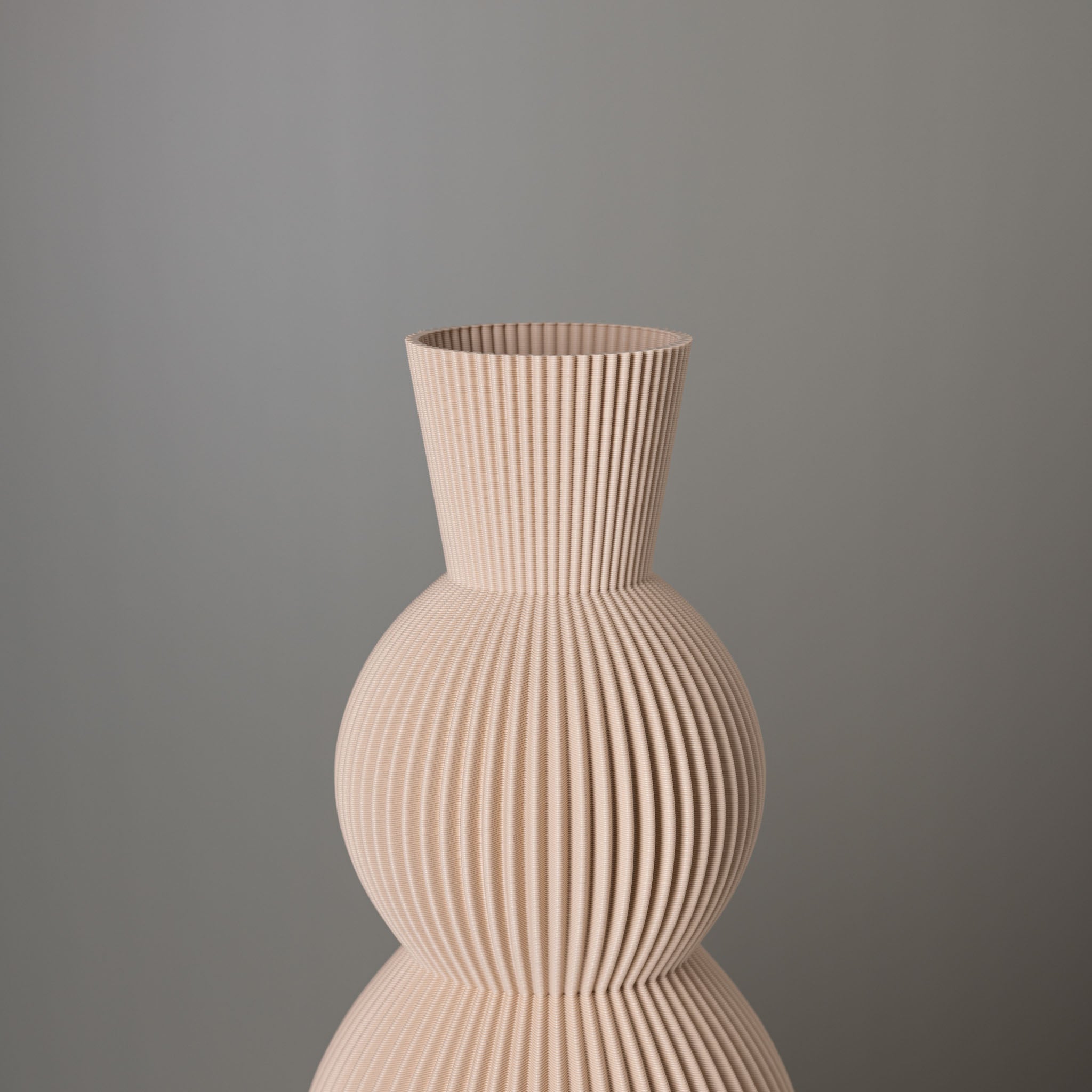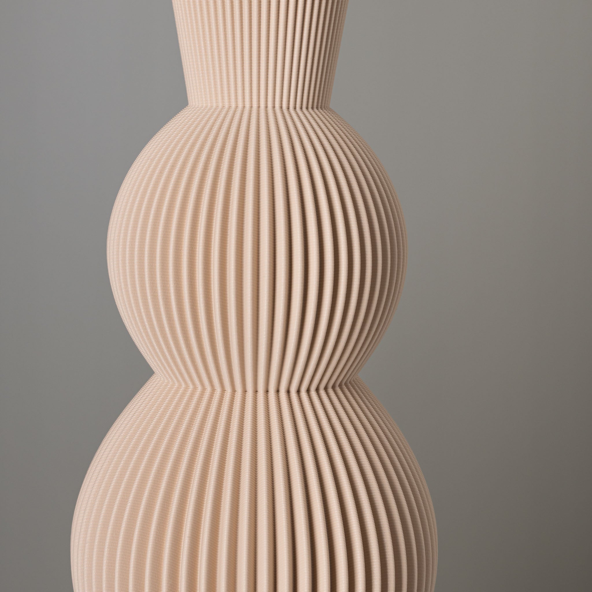 NOVA wordt speciaal voor jou 3D geprint in onze studio in Flevoland. Met gerecycled biokunststof uit de Benelux bouwen we de vaas zorgvuldig op in honderden laagjes. Dit creëert een fijn gelaagde structuur die je ziet en voelt, terwijl we verpakkingskunststof een tweede leven geven als prachtig designobject. Of je nu gaat voor een minimalistische look of een combinatie met droogbloemen — NOVA maakt je interieur helemaal af.