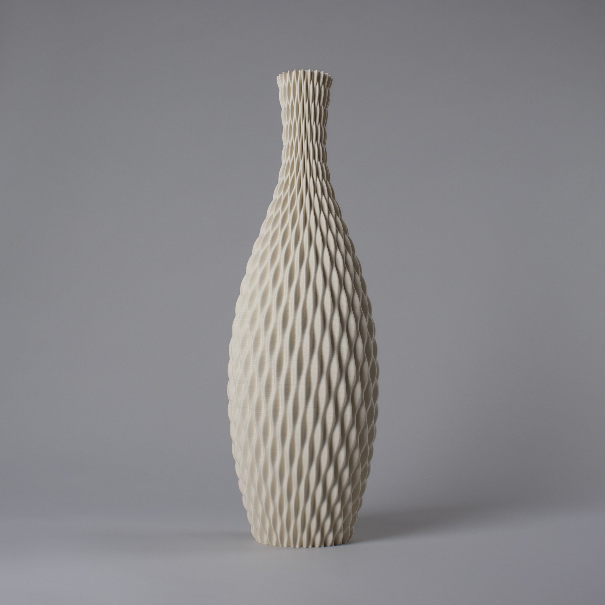 The AQUA vase is created with a complex algorithm that translates flowing water into an elegant organic surface. The unique wave pattern is digitally designed and gives the vase a unique depth effect and a dynamic appearance from different angles. With its slim shape and soft waves, AQUA is an eye-catching piece that instantly adds style to your interior. Place this vase on your dresser or table as a striking solo piece, or add a few pampas plumes to the narrow neck for a natural touch.