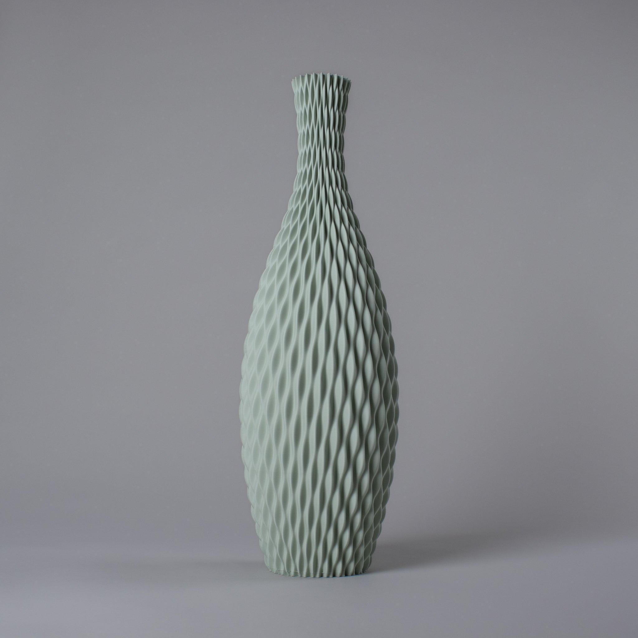What makes vase AQUA extra special is how it's made. Each piece is personally made to order, layer by layer with a 3D printer. In our studio in Flevoland, we transform recycled bioplastic from fruit packaging in the Benelux into a stylish eye-catcher. This process results in a design object that is not only surprisingly robust and lightweight but also contributes to a circular economy.